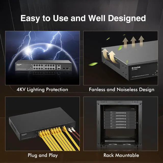 Unmanaged Plug & Play: Support Power Detection function, automatically detect devices, can be compatible with non-POE devices to provide data link. Plug and Play, just plug in the power cord, connect the ethernet cable directly to the device, can be used without configuration.