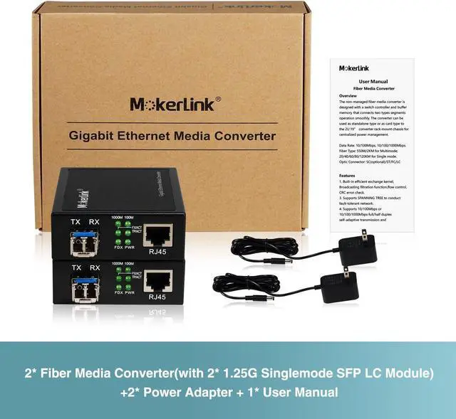 Whats Included: 2pcs gigabit media converter; 2pcs Single-Mode SFP transceiver; 2pcs AC/DC Power Supply; 1 x Users Manual. The transceiver has been installed in the converter, making it easier to use.