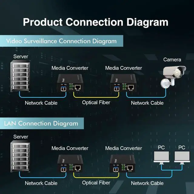 Widely Used: compact size, metal case, cooling holes on both sides, easy to install to various locations that require fiber and ethernet cable conversion, such as home/commercial/industrial, computer room, equipment box, etc.