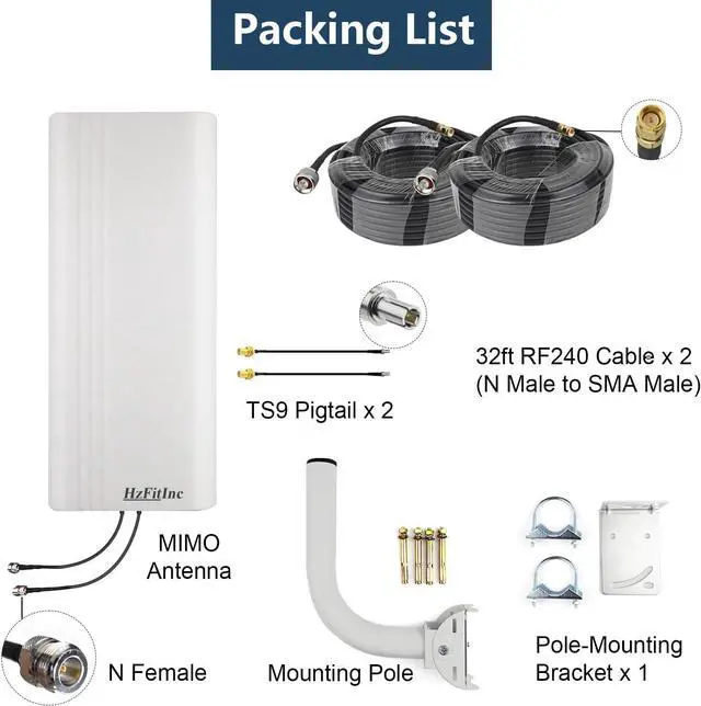 Professional-Grade Installation Kit: Includes a 32ft low-loss RF240 cable, TS9 adapters, and a pole mount bracket for effortless compatibility with Cellular modems, routers, home internet devices, mobile hotspots, and 5G home gatewaysready for plug-and-play deployment.