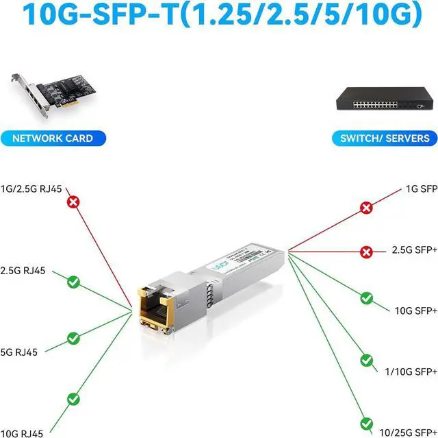 Check if your switch/router supports 10GBASE-T SFP+ modules