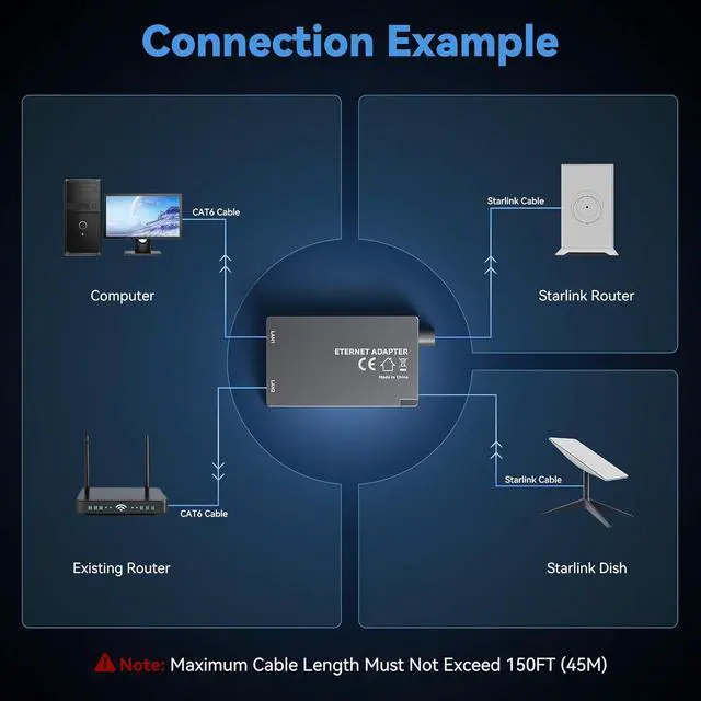 Nogoal Dual-Port Starlink Ethernet Adapter for Gen 2 (2 Devices), 1Gbps High-Speed Networking with Enhanced Stability, Starlink V2 Accessories Internet Satellite Kit for Home Office/Gaming/Streaming