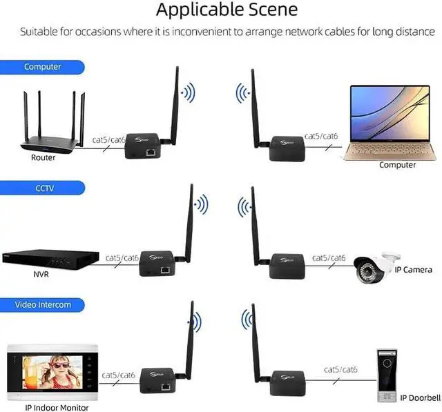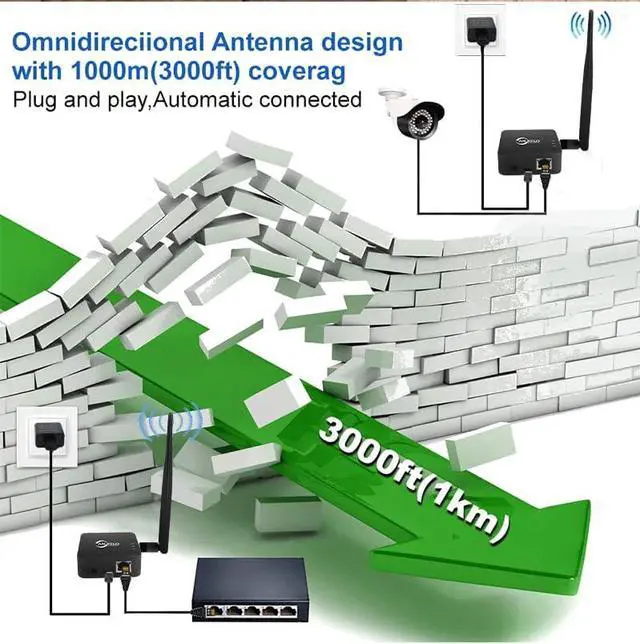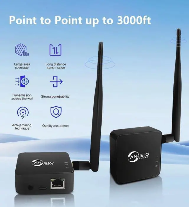 Extended Network Coverage: With a range of up to 1KM, it is an ideal solution for seamlessly connecting distant buildings, barns, shops, farms, garages, warehouses, or security cameras.