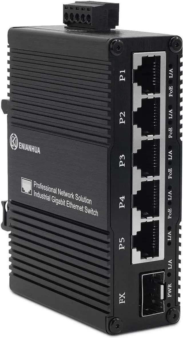 10/100/1000Mbps POE+ Ethernet 5-port 10/100/1000BASE-T RJ45 with auto MDI / MDI-X function; 1 SFP Port, 1000 Base-X; Support 10/100/1000Mbps adaptive, compliant with IEEE802.3, 802.3u, 802.3ab, 802.3z, 802.3x ethernet standards