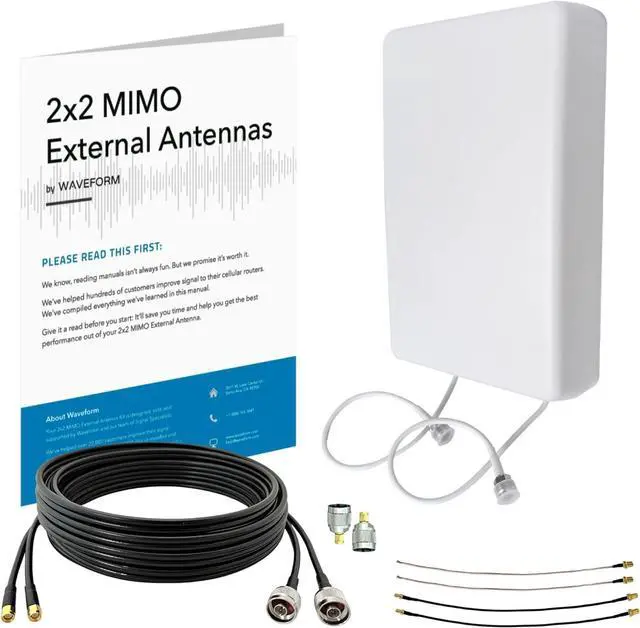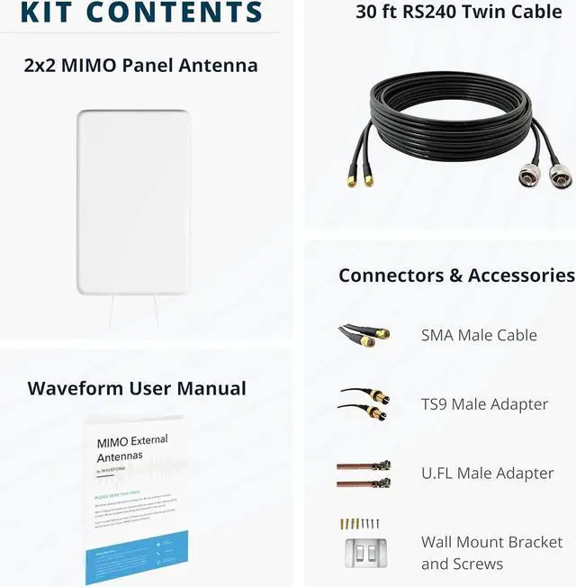 SAY GOODBYE TO LOW QUALITY VIDEO CALLS - The MIMO Panel Antenna Kit by Waveform uses a Cross-Polarized Panel antenna, with up to 8dBi of gain over 600-2700MHz to give your LTE modem or hotspot the speed it deserves.