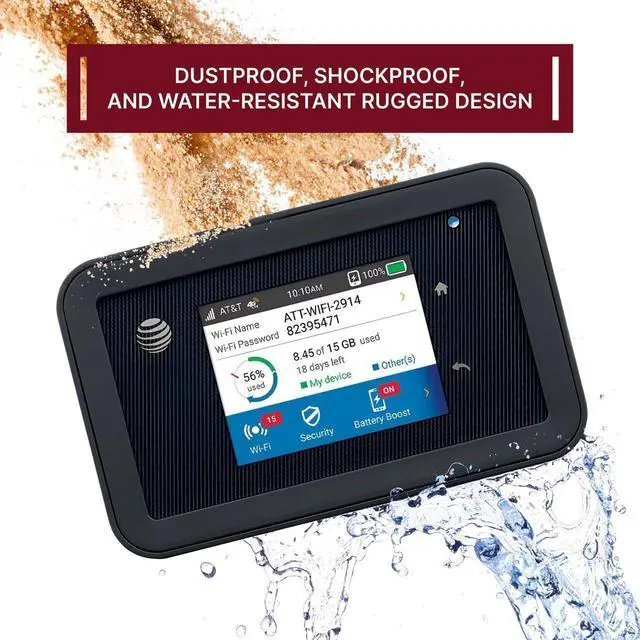Durable, rugged, and protected housing The AT&T Unite Explore AC815S features a water-resistant, dust-resistant, and shock-resistant enclosure (MIL-STD and IP65). Ideal for travelers, outdoor activities, job sites, and harsh environments.
