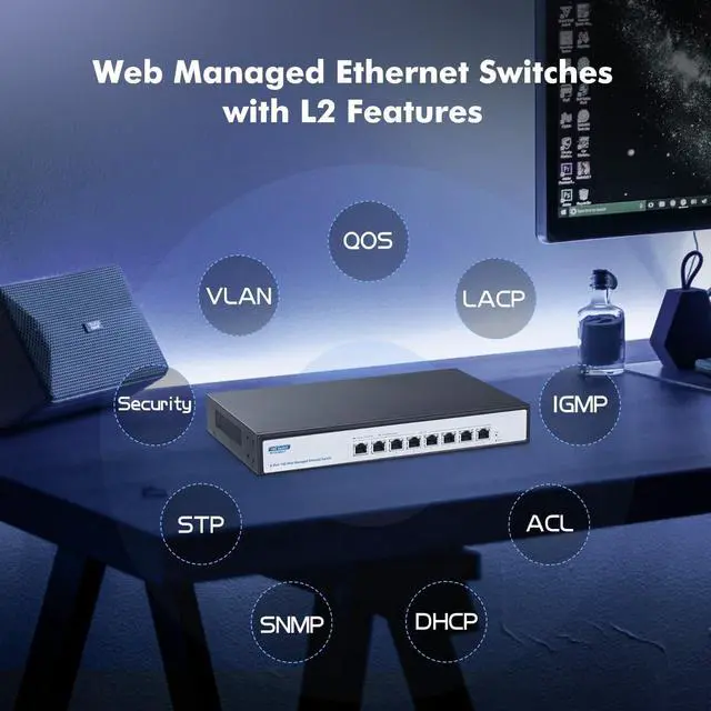 Widely Used: The 8 port 10g switch is made of metal case, LED indicators, Industrial-grade fan, good heat dissipation, energy-saving and stable operation. Desktop/Rackmount(with rack ear), can be used as a core, distribution or access layer switch. Multiple devices can be connected, such as 2.5G/5G/10G WiFi6 AP, NAS, PCIe Adapter/NIC, Server, 8K video, and more.