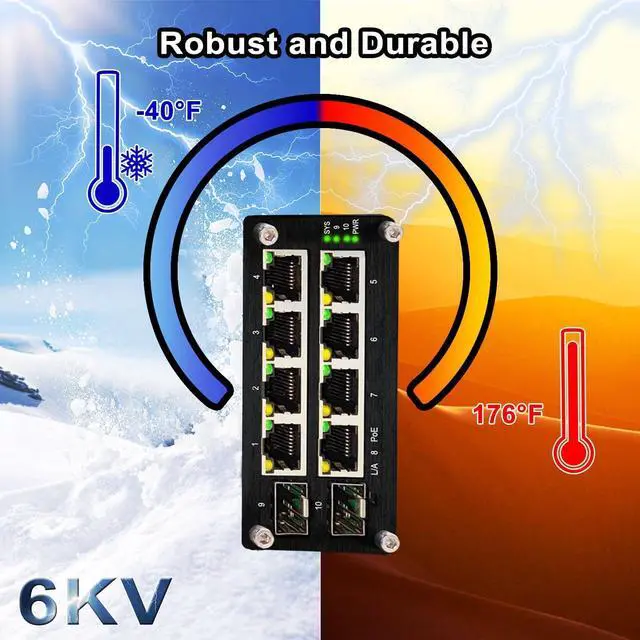 Reliable Industrial PerformanceSupports 802.3x flow control, CE/FCC certified, and operates reliably from -40°F to 176°F for industrial automation and outdoor use.