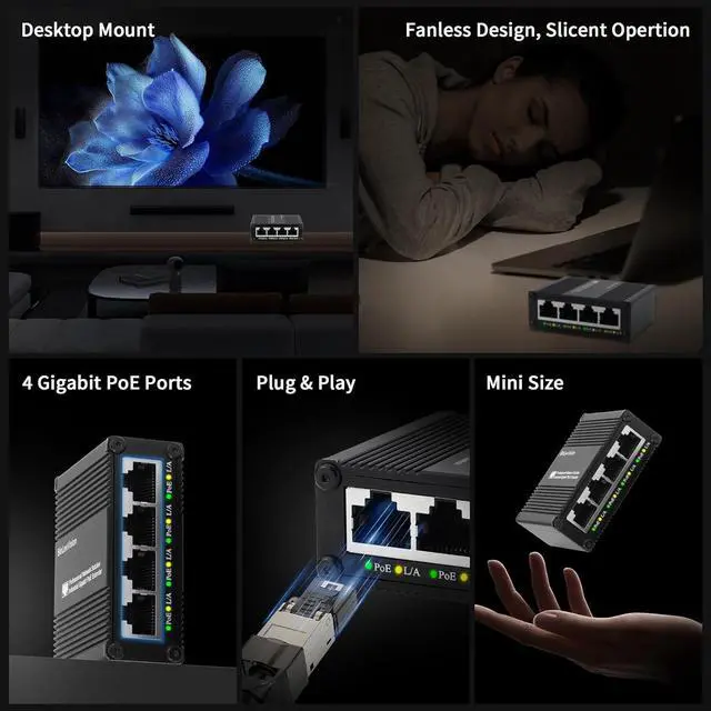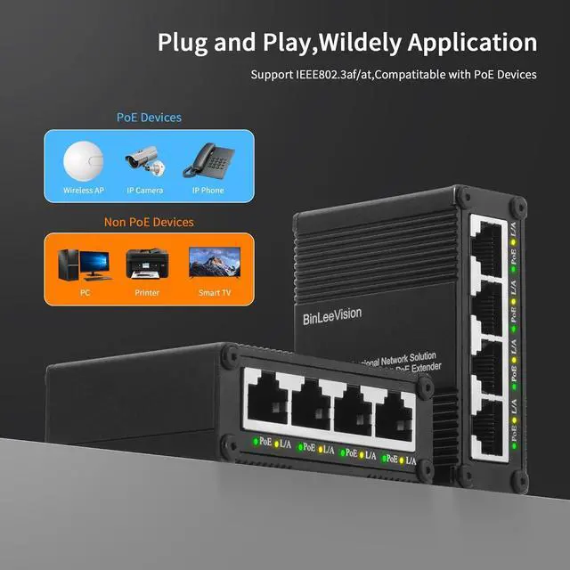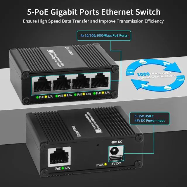 5 Gigabit Ports Including 4 Gigabit PoE+ Switch and 1 Gigabit UpLink PoE Ethernet port.All ports up to 100/1000Mbps speed, providing a fast network performance.