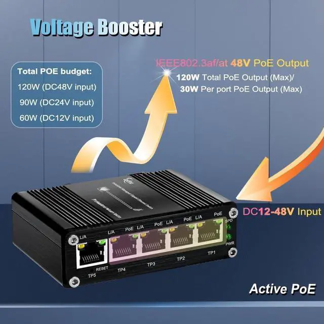 IEEE802.3af/at PoE StandardThis Switch supports IEEE802.3af/at PoE (30W), can easily power multiple devices, reducing the need for additional power cables or adapters.