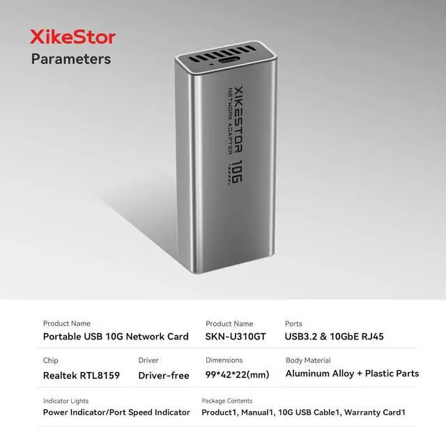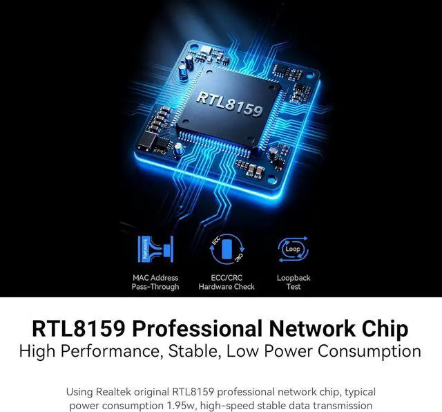 High-Performance RTL8159 Network ChipAdopts the original Realtek RTL8159 professional network chip. Delivers high performance and stable data transmission, while maintaining low power consumption (typical power consumption: 1.95W).