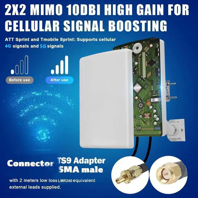 High Gain & Long-Range Coverage: 10dBi directional design targets weak cellular signals up to 10km, optimized for rural/remote areas. MIMO 2x2 cross-polarized technology improves data throughput for stable 4G/5G and WiFi 2.4GHz connectivity