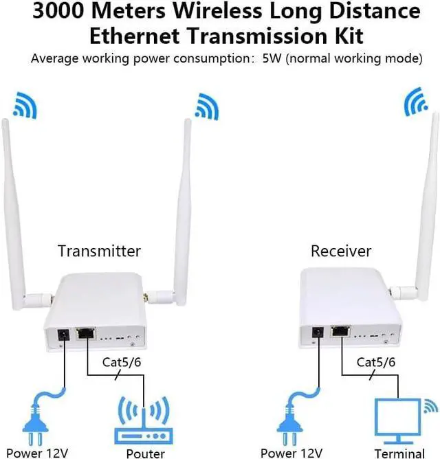 3KM LONG RANGE TRANSMISSION DISTANCE: Outdoor wireless bridge is a built-in 20DBi directional antenna can significantly improve the transmission and reception performance of wireless signals,provide up to 100Mbps wired network speed,the long range WiFi bridge can reach up to 9842ft transmission distance (Barrier-free),the trees will not block the transmission speed of the WiFi point bridge, suitable for warehouses or garages next to your house
