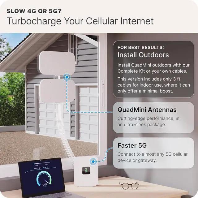 MINI BUT MIGHTY: Upgrade to blazing-fast 5G. Data rates arent just about signal strength. MIMO isolation and polarization make a huge difference. QuadMini offers up to 5.2 dBi gain with an ultra-thin and lightweight profile, significantly improving cell signal to routers with 4 antenna ports, ensuring faster data, lower latencies, and greater reliability.