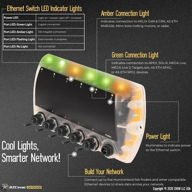 Amber Connection Light - HELIX G4N & G3N, AS ETH NMEA2K, Minn Kota Trolling Motor, Radar