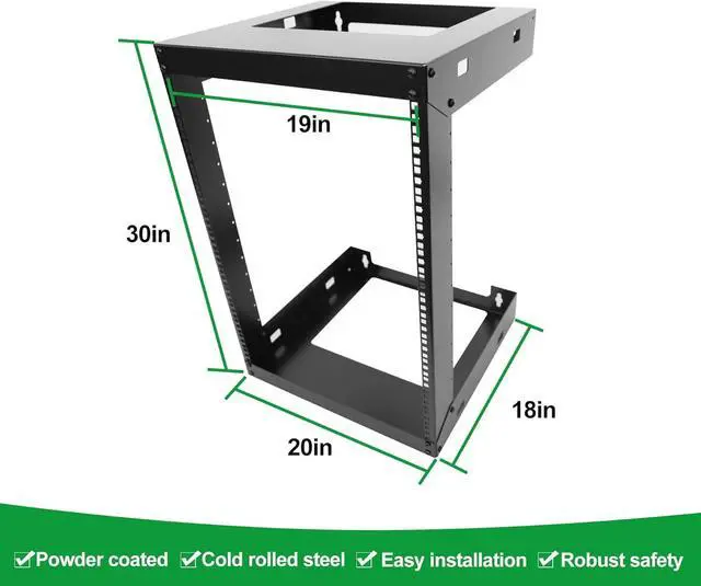 • Installation depth:Network rack Fit 19" Standard Equipment.Enjoy flexible configuration 15U Network rack open frame featuring .Installation depth 18Inch Compatible with various servers, switches, data, AV, other IT equipment.