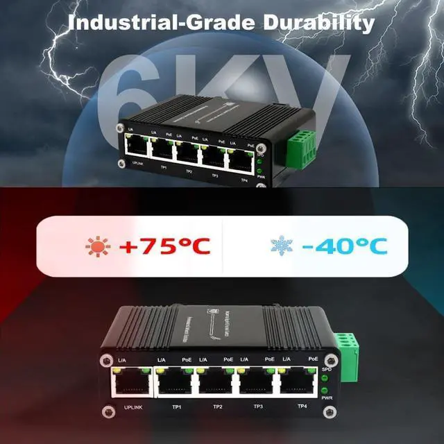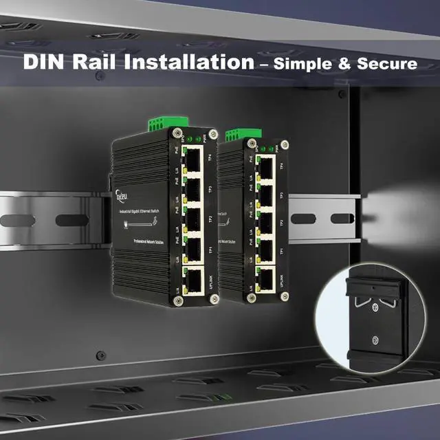 Compact IP40 rugged metal enclosure; Wide working temperature (-40 to 176 ); Support DIN-Rail & Wall Mount installation.