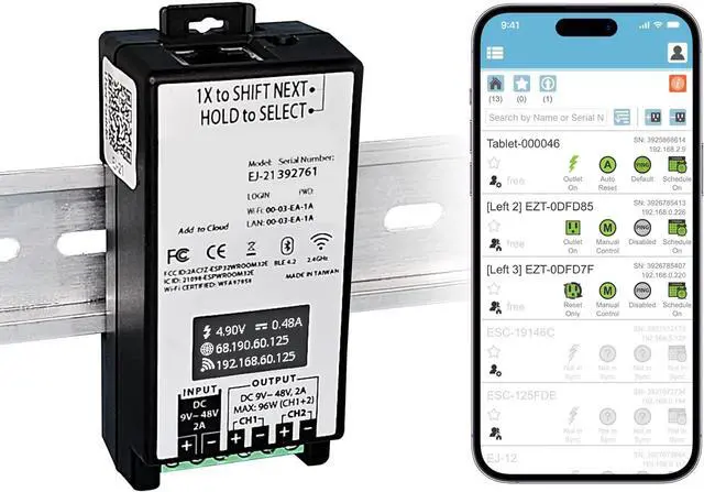 DUAL CHANNEL CONTROL: Features two individually controllable DC channels (9V-48V, 2A) accessible via LAN or Cloud, perfect for managing multiple network devices simultaneously