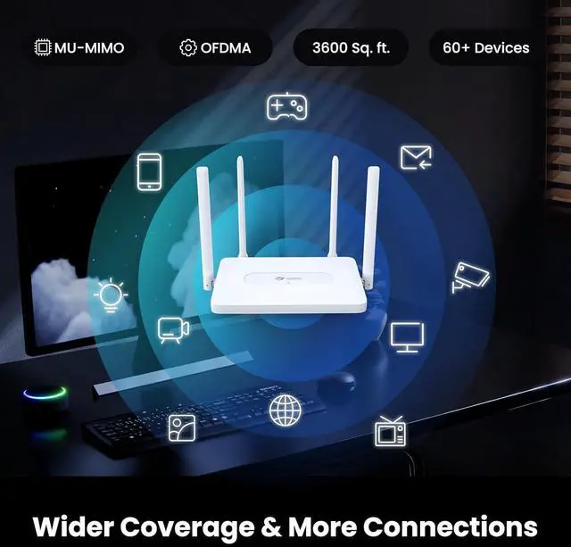[Large Wi-Fi Coverage] Our wireless routers for home are specially engineered to cover large spaces and allows the connection of up to 60 devices at the same time! Ideal for office, business, work, conferences, restaurants, crowded spaces, stations, or home!