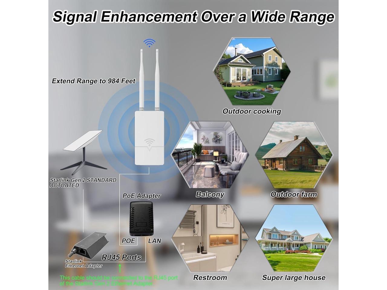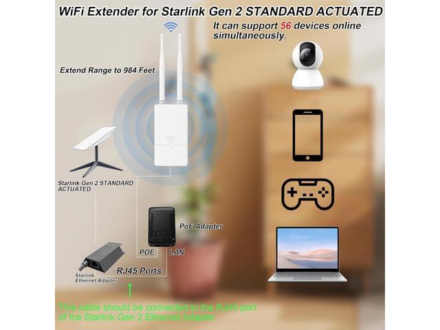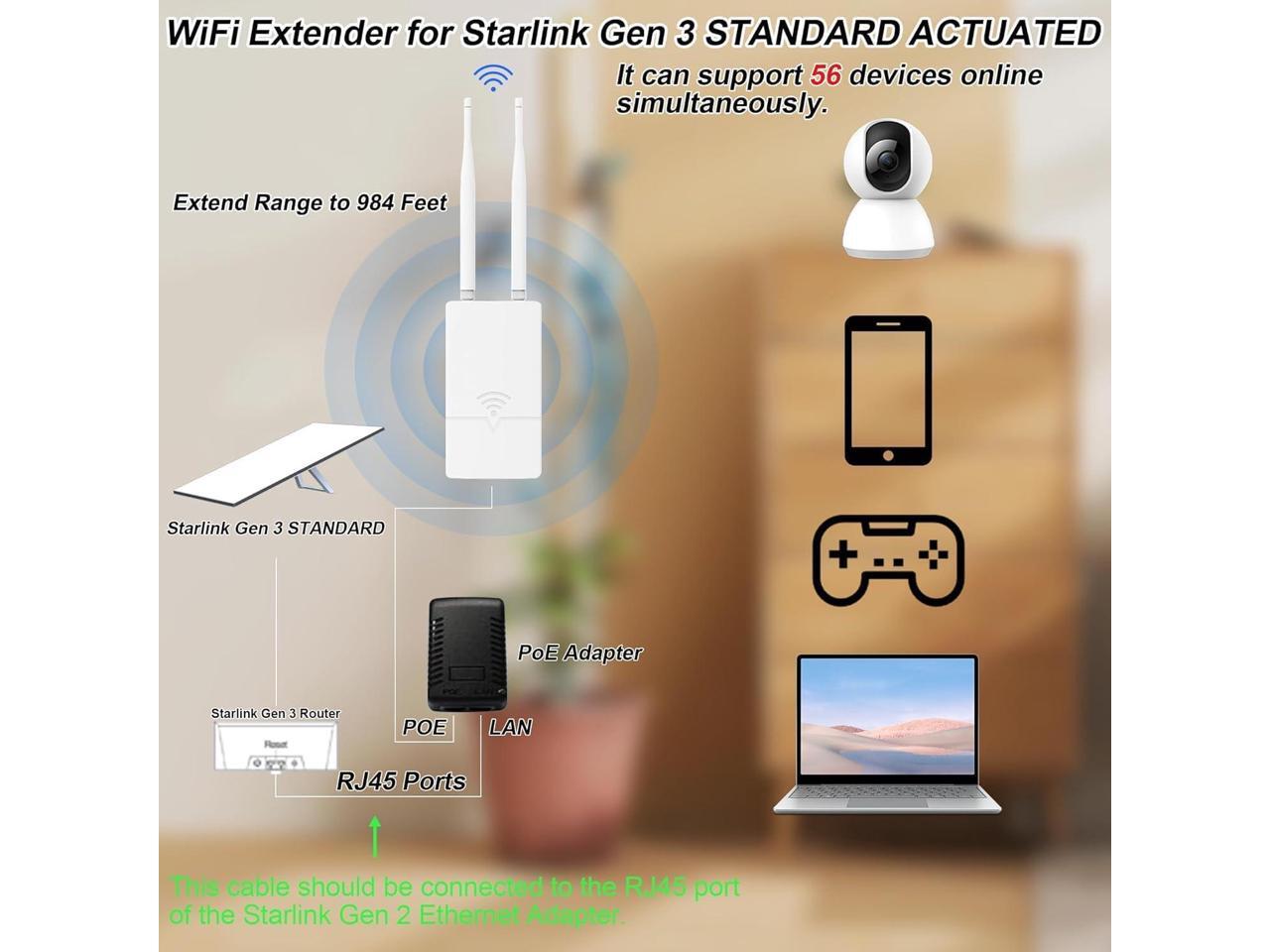 Outdoor Starlink WiFi Extender for Starlink Gen 3 Router, 300Mbps Starlink Signal/WiFi Repeater, 0.3KM Signal Coverage, IP65 Waterproof, Up to 56 Devices for Farm/Yard/RV/Campsite