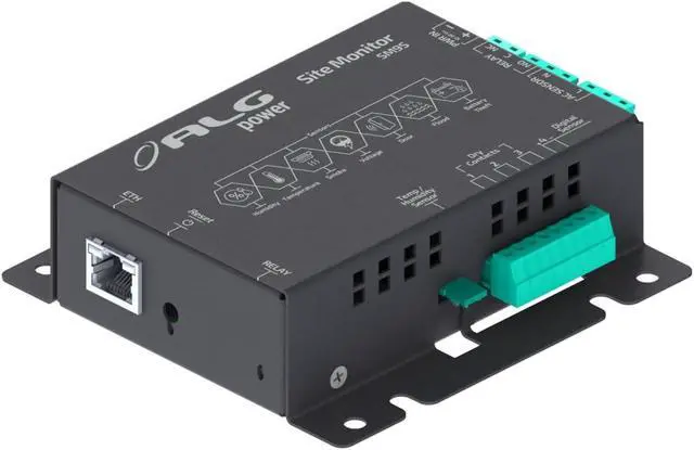 The Site Monitor is a monitoring and security module developed with the goal of providing accurate information via the Web server and SNMP-V2 protocol. The essential equipment for monitoring and securing data centers and POPs. Block Connector, 10 - 60 VDC RJ45 Connector, PoE 802.3 af WebServer and SNMP Protocol Monitoring of AC mains voltage Monitoring of DC power voltage Temperature monitoring (integrated sensor) Relative humidity monitoring (integrated sensor) Three inputs for dry contact sensors Input for digital sensor Programmable output with dry contact type for up to 5A