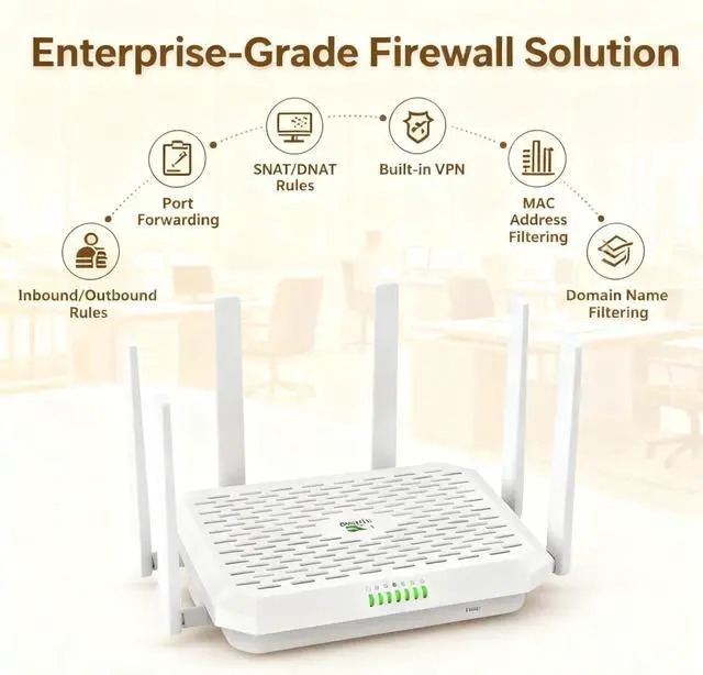 Features firewall policies, built-in VPN (IPSec, L2TP), access control, and data encryption to ensure a secure network connection. The FWA02 offers high-speed 5G without waiting via simple plug-and-play setup.