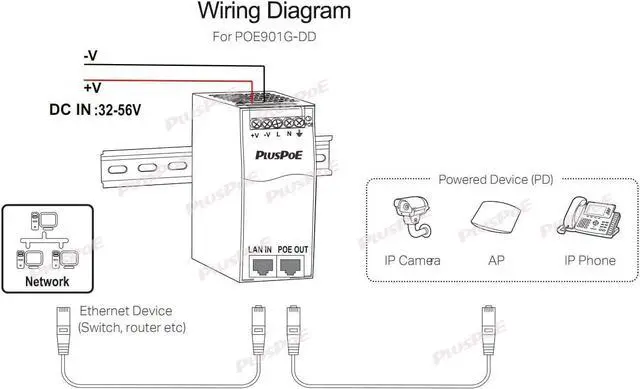 The Hardened PoE++ Injector can offer power supply for POE devices such as Wireless Access Point, PTZ camera, Cash register etc.