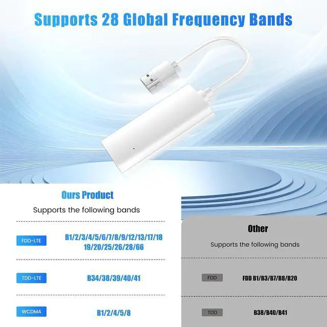 28 Bands Global CoverageStay connected globally. Unlike standard devices with only 8-9 bands, this portable WiFi Router supports up to 28 frequency bands worldwide, giving you access to local carrier networks in different countries and territories. Enjoy wider coverage and more stable connectionstravel anywhere, stay online with ease