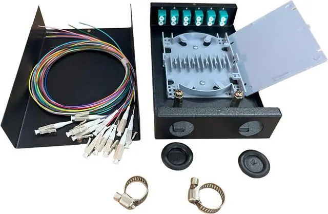 CAPACITY: Accommodates up to 12 fiber cores with pre-installed 12-strand LC-UPC OM3 pigtails for quick deployment