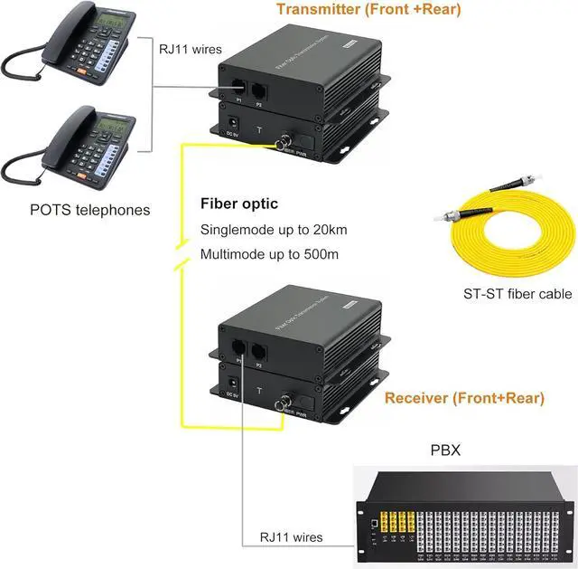 Extend POTS Telephones and Network signal by fiber: 2 Independent POTS telephone lines and 1 10/100 Mbit/s Ethernet port over same fiber optic cable to remote end