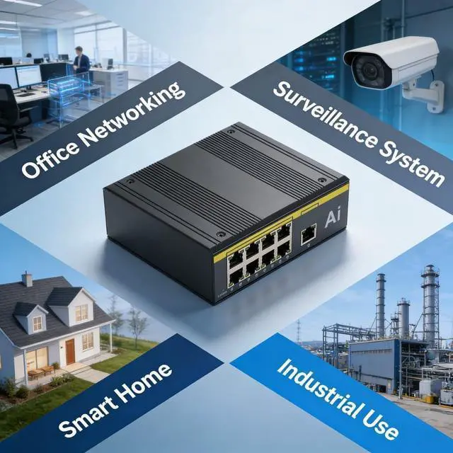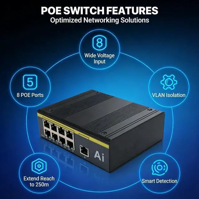 [Industrial Ethernet Switch]: Features 8 PoE ports and 1 uplink port supporting 10/100Mbps for reliable high-speed data transmission in demanding environments.