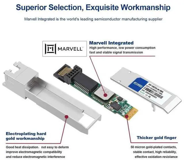 Fast & Stable Signal Transmission - This 10G(compatible 1.25G/2.5G/5G/10G) SFP+ RJ45 copper module connect with network router, server or switch. It transmits data up to 10Gb/1000Mbps transfer speed for max distance 30m with CAT6A/CAT7 cable.