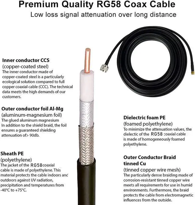 Packing List Tuned 915Mhz Antenna with Bracket & 32ft of RG58 Cable & RP-SMA Adapter