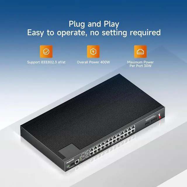 Plug and Play: Please note that this PoE switch is a non managed switch, plug and play, and does not require any settings. Although it comes with a console port, this port is useless.