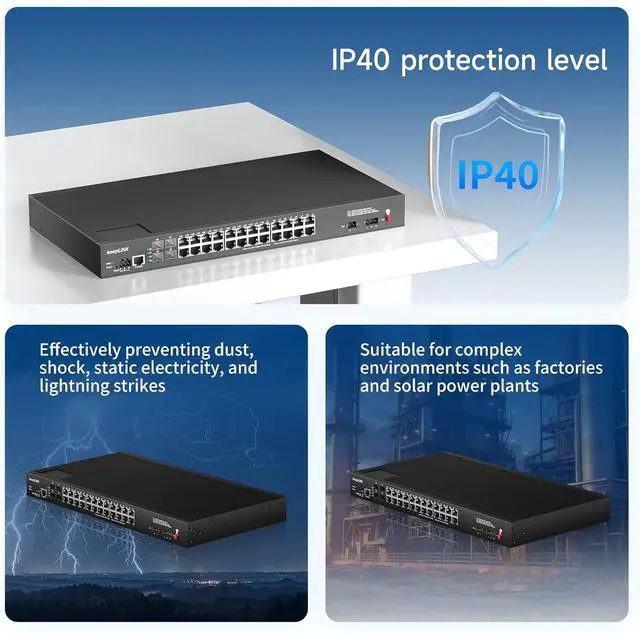 IP40 Protection: Dust-proof, shock-proof, lightning-proof, anti-static interference, suitable for complex environments such as factories, farms, solar power stations, roadsides, etc.