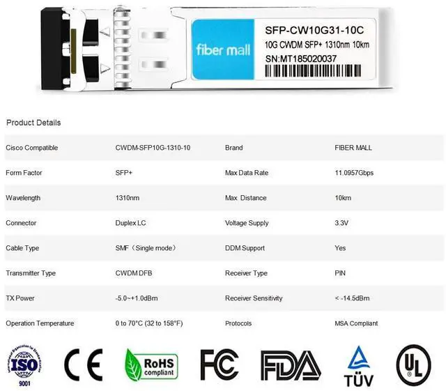 10G CWDM 10G CWDM SFP+ transceiver,1310nm ,10km, single-mode fiber (SMF) via an LC duplex connector.