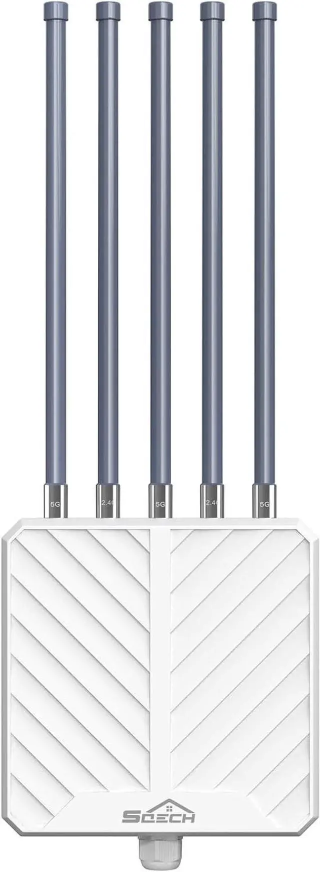 Long-Range WiFi CoverageThe outdoor WiFi extender is equipped with 3x8dBi 5.8GHz and 2x8dBi 2.4GHz detachable omnidirectional external antennas, which can extend the WiFi coverage to 300-500 meters (984-1640 feet) radius with better wall penetration performance. It is very suitable for large areas, large houses, farms, garages, large backyards, swimming pools, streets, parks, offices and outdoor use. The long-range outdoor WiFi extender can connect up to 256 devices and has good compatibility.