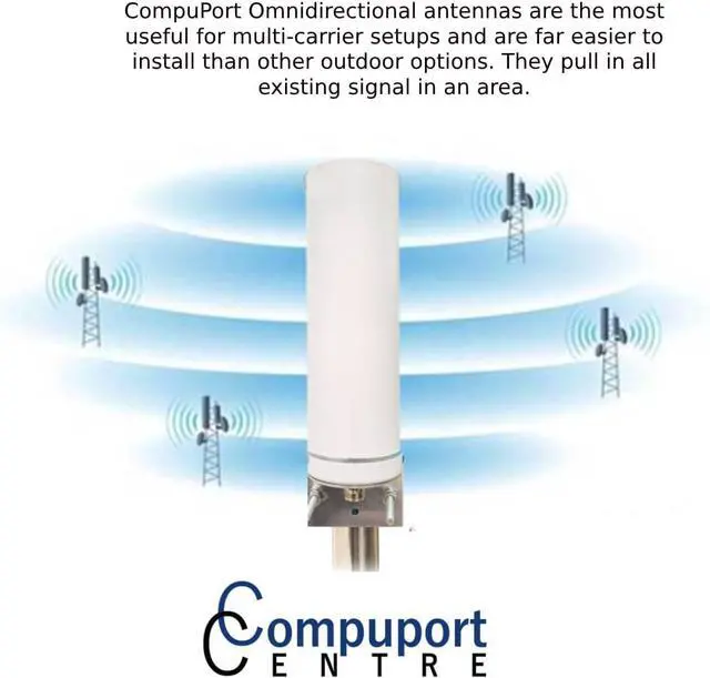 CompuPort Weatherproof multiband 3G / 4G and 5G LTE omnidirectional antenna, is designed for all 3G, 4G and 5G frequency bands used
