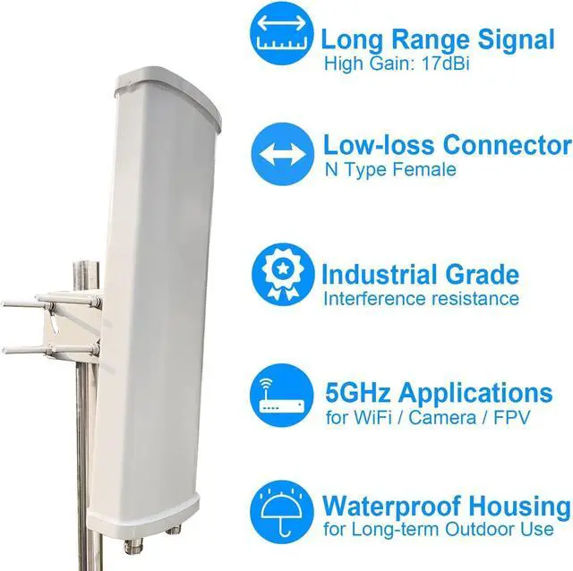 POWERFUL SIGNAL: High gain 17dBi antenna boosts WiFi range up to 30% farther than standard antennas, ideal for covering large outdoor areas up to 1500 sq ft.