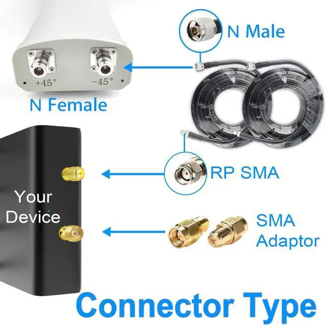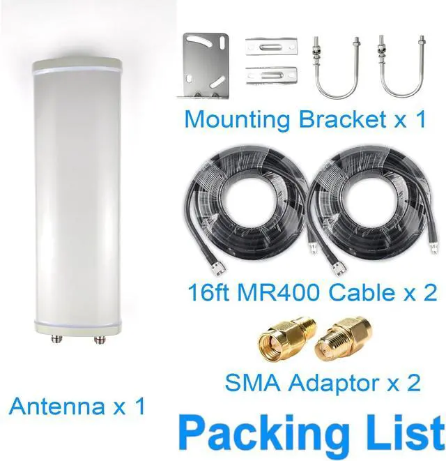 Packing List: 5GHz WiFi Antennax1, 16ft Low Signal Loss cablex2 (RP SMA Male), SMA Adaptor x2