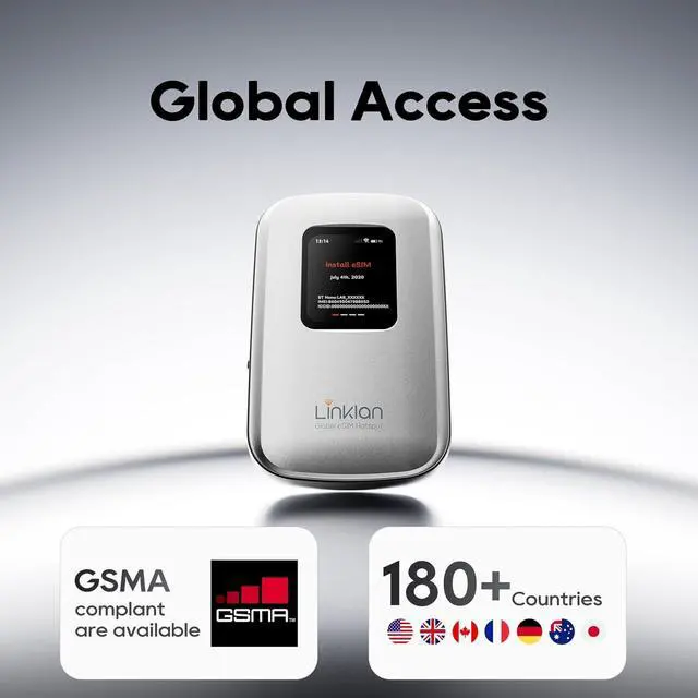 Ultra-Fast 4G LTE with Global Coverage The Linklan eSIM mobile hotspot offers 4G LTE Cat 6 connectivity, supporting 30+ global frequency bands. Enjoy seamless roaming in over 180 countries and regions, making it ideal for international business travel and global journeys. With speeds up to 300Mbps via dual-band WiFi, it ensures smooth performance for business, video calls, and high-definition entertainment.