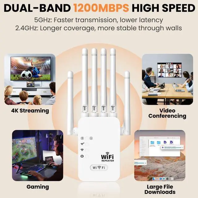 Fast Dual-Band WiFi Speeds Up to 300/1200Mbps on 2.4GHz and 5GHz bands for smooth streaming, gaming, video calls, and faster downloads