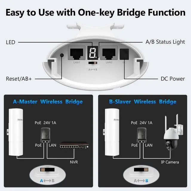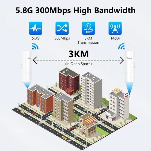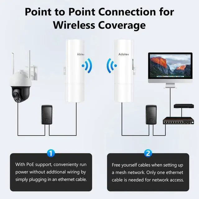 Wide Application for IP Cameras & Remote Networking Perfect for extending network connectivity to locations where cabling is impractical. Ideal for security camera systems, farms, ranches, warehouses, workshops, and separate buildings. No long Ethernet cables requiredsimply power on and connect for reliable long-distance networking.