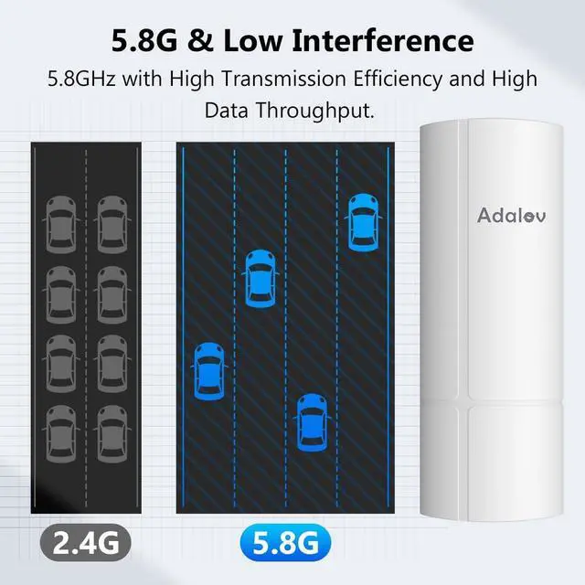 Long-Range 5.8GHz Wireless Bridge Stable Point-to-Point Connection Adalov CPE380 is a professional outdoor wireless bridge operating on the 5.8GHz band, designed for point-to-point (PTP) and point-to-multipoint (PTMP) transmission. It supports long-range wireless connectivity up to 23KM (line of sight) with reduced interference compared to 2.4GHz networks, making it ideal for outdoor networking solutions.
