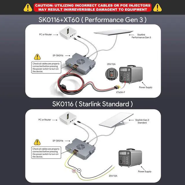 Compatible with Starlink Standard, Enterprise & Performance Gen3Exclusively engineered for seamless integration with the Starlink Standard Generation 3 satellite terminal. Includes a premium XT60 output cable for easy connection to portable power stations or external batteries, ensuring uninterrupted satellite internet anywhere.