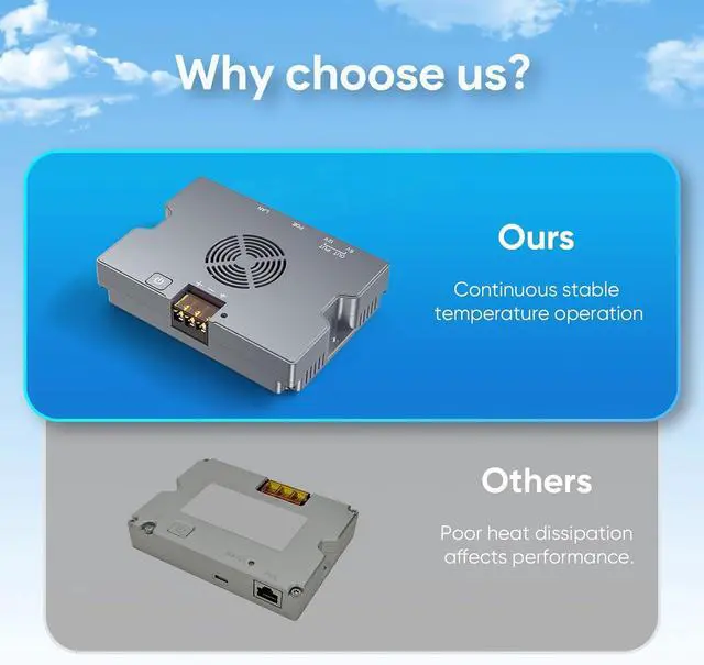 Intelligent Cooling & Rugged Aluminum Housing MSAFF 350W PoE Injector for Starlink Standard features a built-in smart fan that automatically adjusts speed for efficient heat dissipation across a wide operating range (-30°C to 75°C). The durable aluminum alloy casing provides superior protection against impacts, corrosion, and harsh environmental conditions.