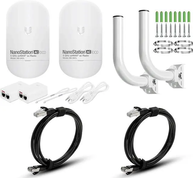 Complete Bundle of Pre-Configured LOCO 5AC NANOSTATION, Two Poles and Two CAT-8 6FT Ethernet Cable.