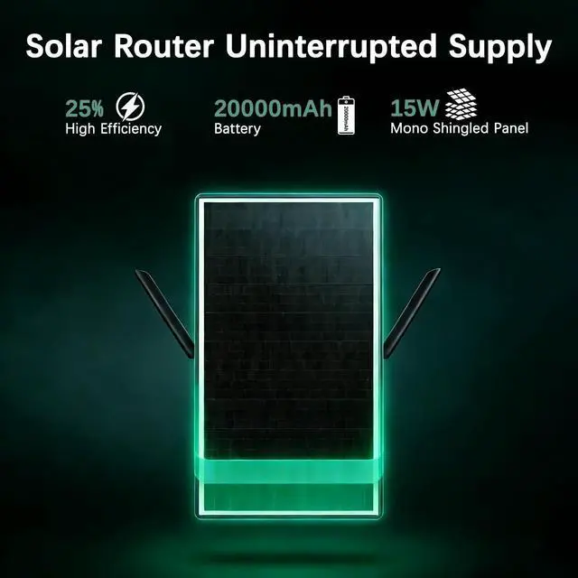 20000mAh Solar Fast Charging & Long Life20000mAh large capacity rechargeable battery + 15W solar panel, supports 300 charge-discharge cycles, no battery replacement needed, 365 days non-stop stable operation. USB-C port for emergency charging, realize uninterrupted outdoor internet use.