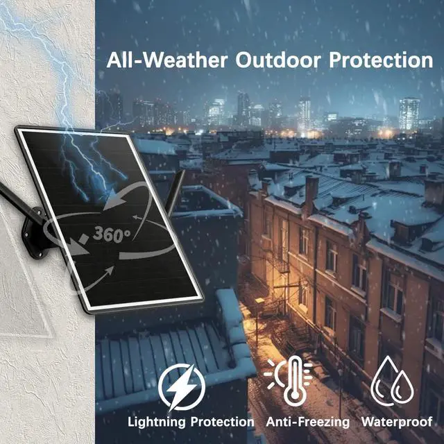 All-Weather Durable & Easy InstallationIP65 waterproof rating, resistant to heavy rain/snow and harsh weather, working temperature 14-120. 360° adjustable bracket, wire-free and tool-free installation, place it freely in sunny areas for maximum solar absorption.