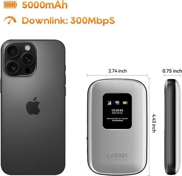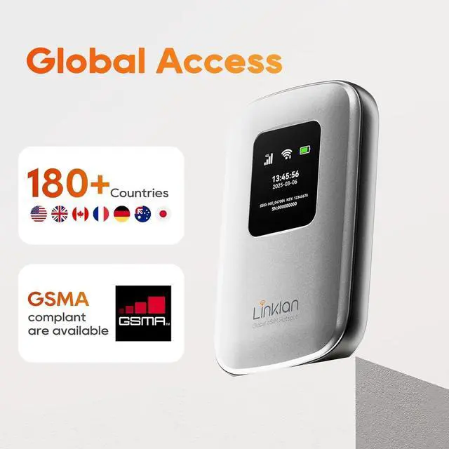 Ultra-Fast 4G LTE with Global Coverage The Linklan eSIM mobile hotspot offers 4G LTE Cat 6 connectivity, supporting 30+ global frequency bands. Enjoy seamless roaming in over 180 countries and regions, making it ideal for international business travel and global journeys. With speeds up to 300Mbps via dual-band WiFi, it ensures smooth performance for business, video calls, and high-definition entertainment.